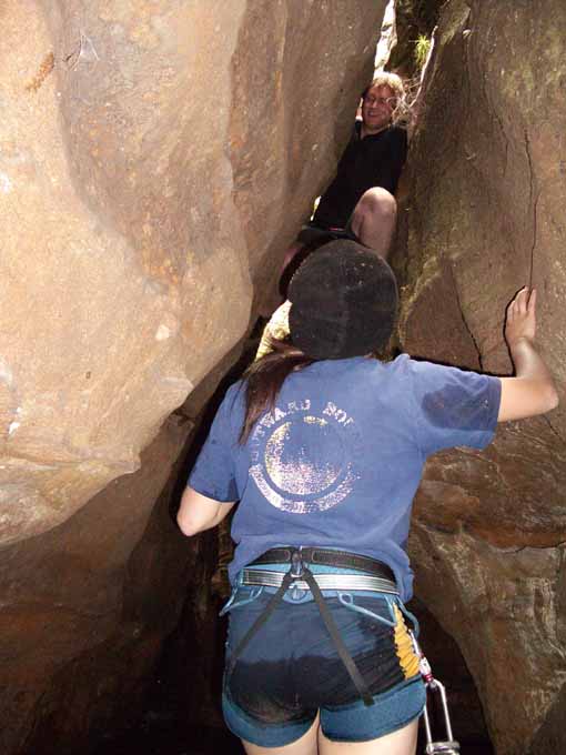 Above - Clare watches Chris climb down the tricky bit