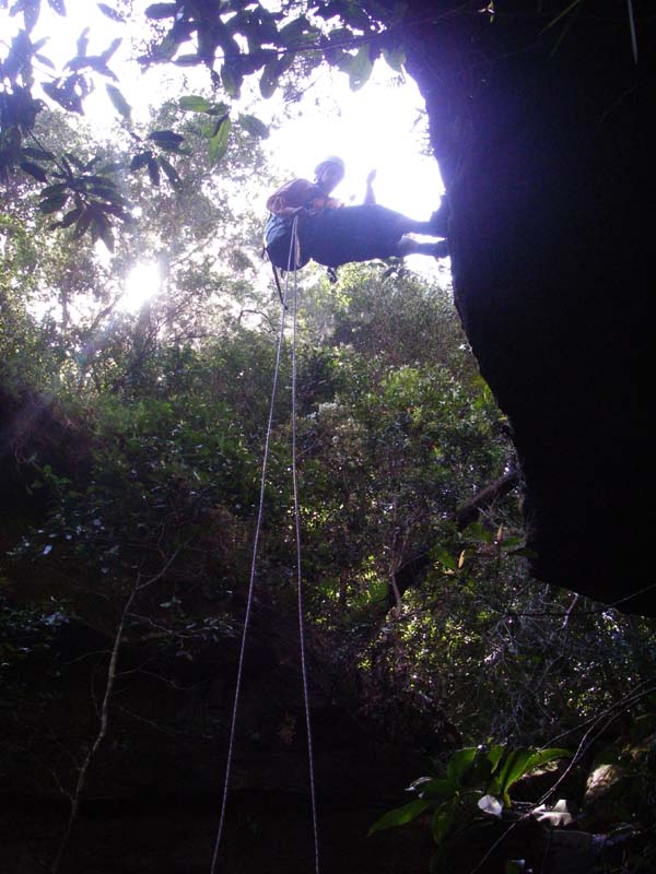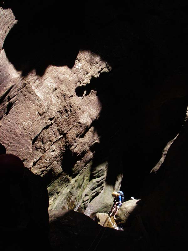 Above - Kim C on the first abseil of the main drop