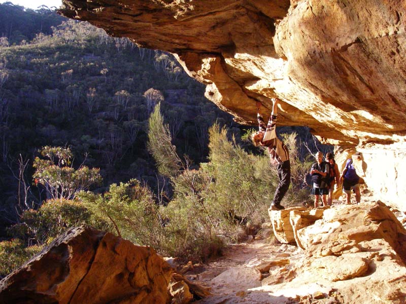 Above - Tina trying some climbing moves - at the Bowens Creek Crag, Chuin Nee, John and Digi Dave watch.