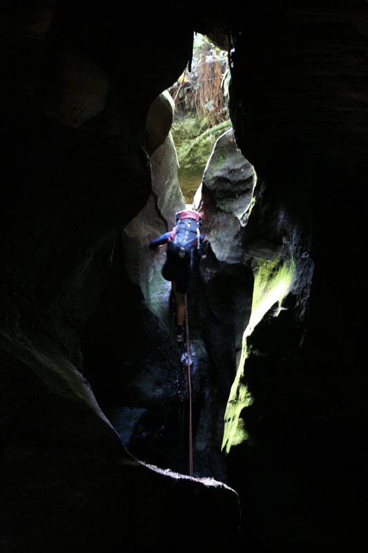 Above - The only abseil in the canyon is down this drop
