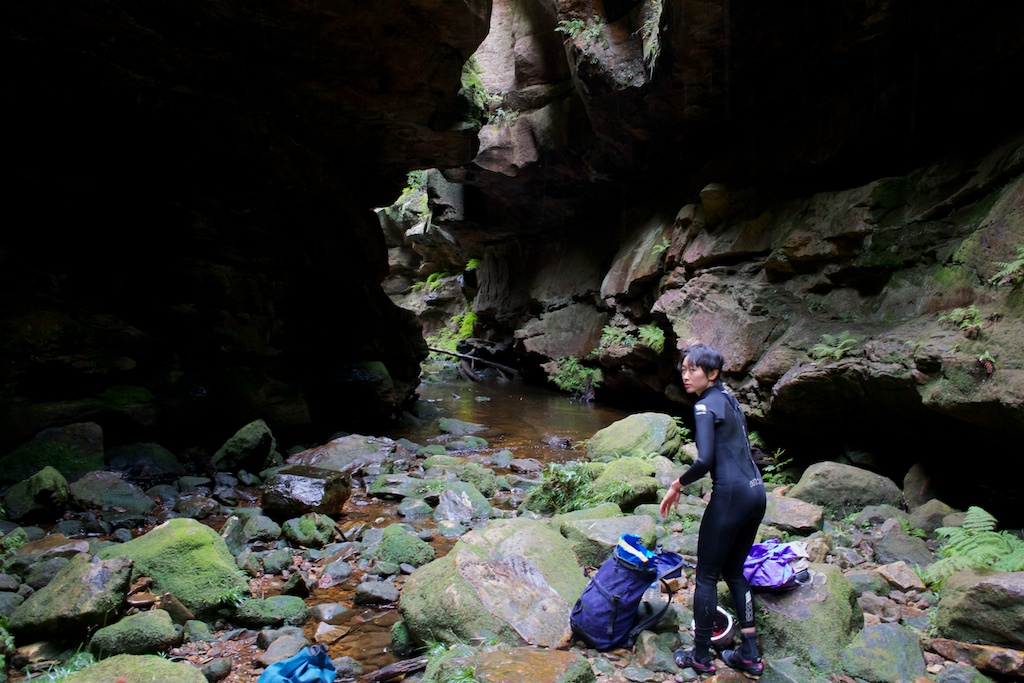 Above - Pete above a small waterfall in the canyon