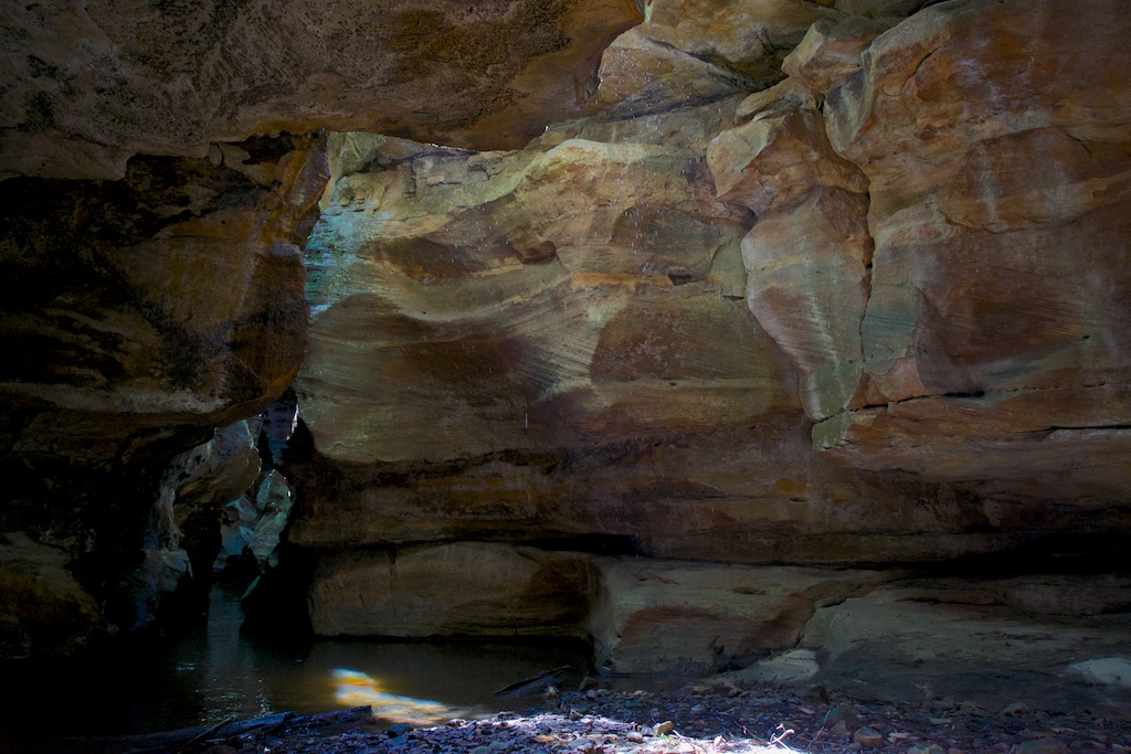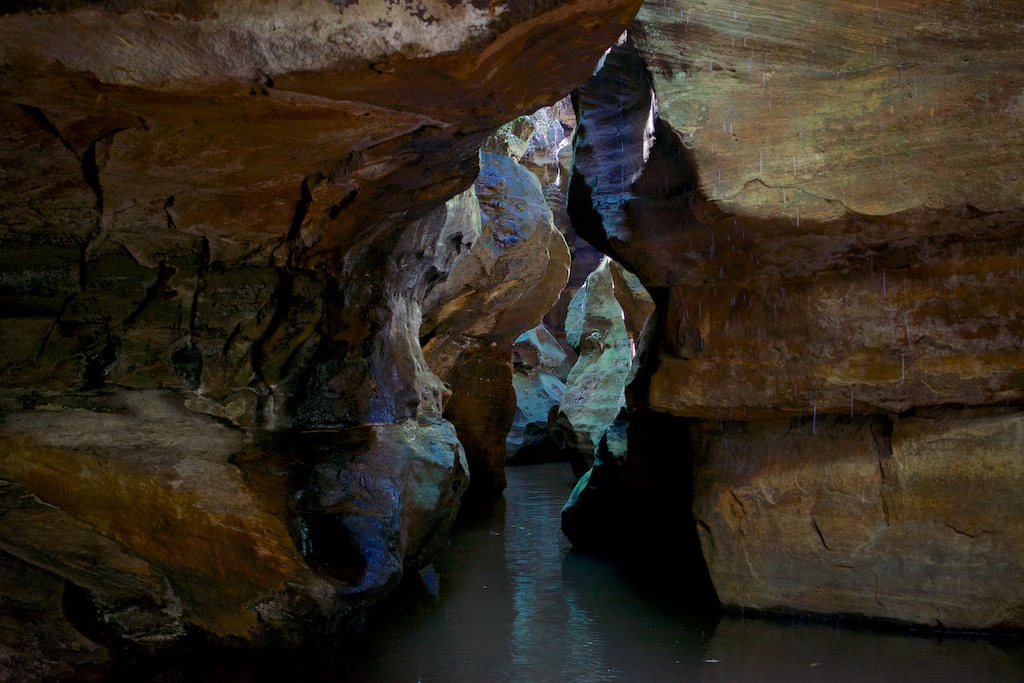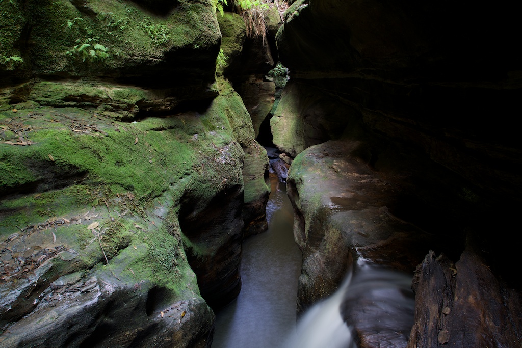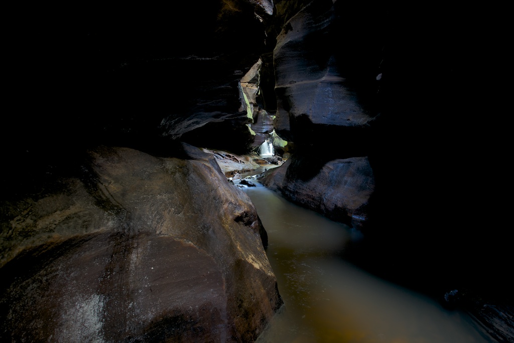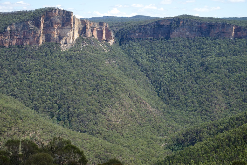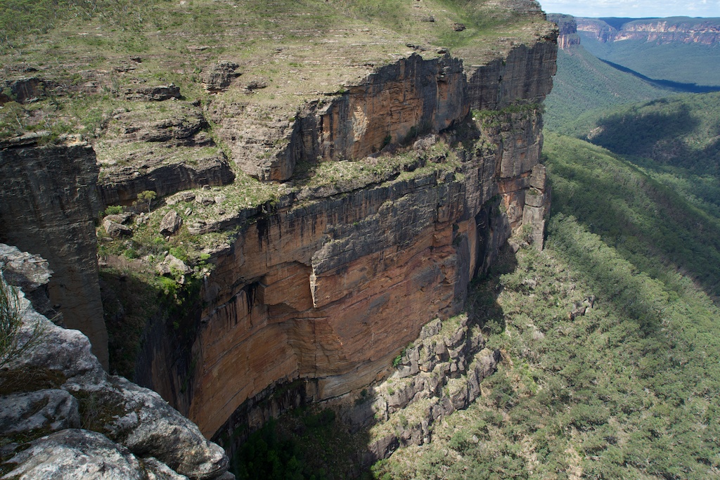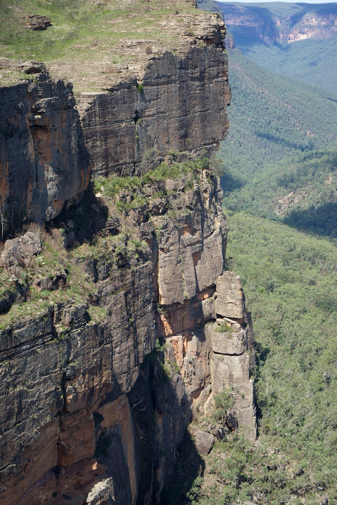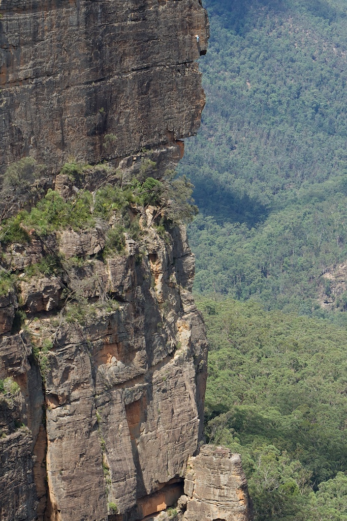 Above - the climber just visible and the Mirrorball Pinnacle below