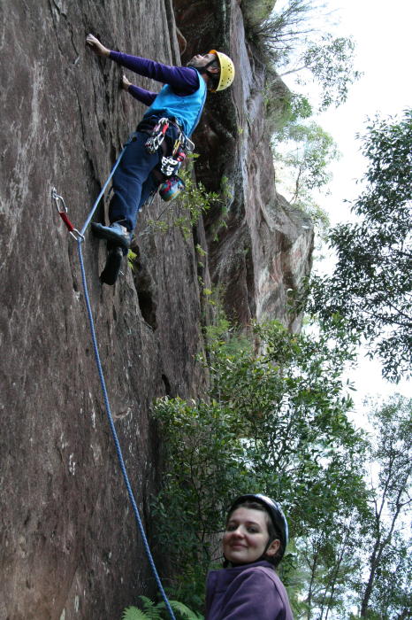 Above - Dave on Common Sense (17), Lana belays