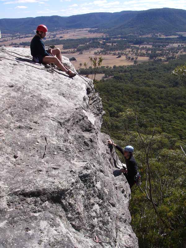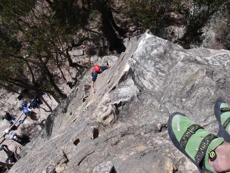 Above - From the top looking down at another climber, Anne, on "Snap"