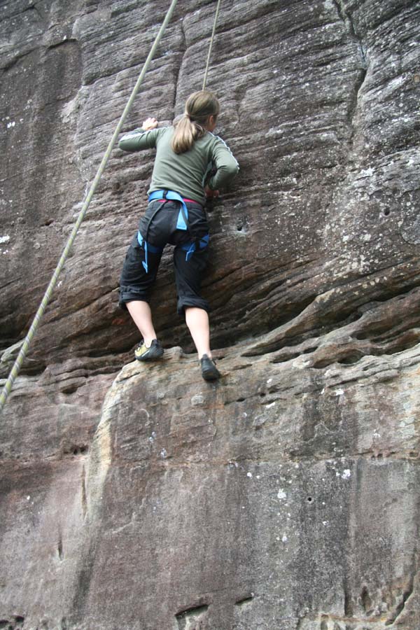 Above - Maud staring a climb, Rachael belaying. Kim behind.