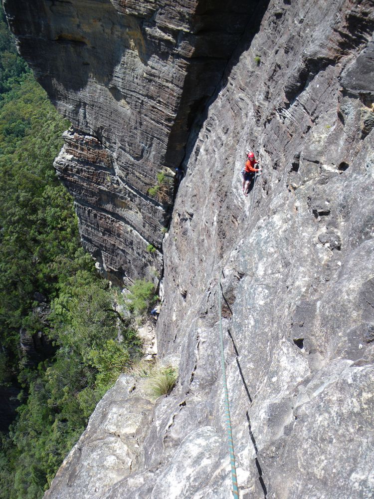 Above - Sarah on the third pitch - the "traverse"